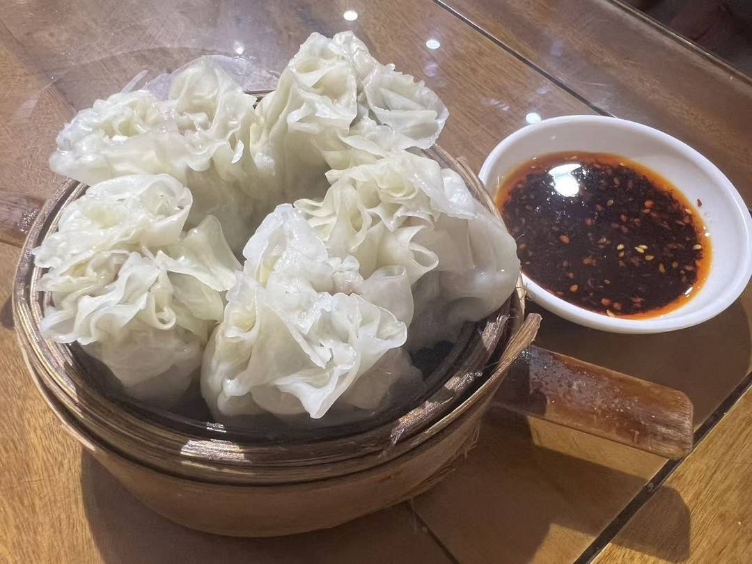 ·烧麦:皮薄透光,顶上捏朵花,蘸红油辣子醋碟,香惨了。