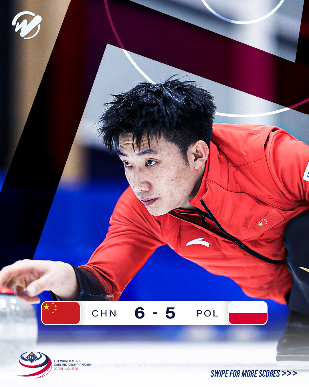 北京时间4月3日,2026年男子冰壶世锦赛在美国犹他州奥格登市结束了循环赛的争夺。在最后一轮比赛中,中国队以6-5力克波兰队,以一场胜利结束了本届世锦赛的征程。